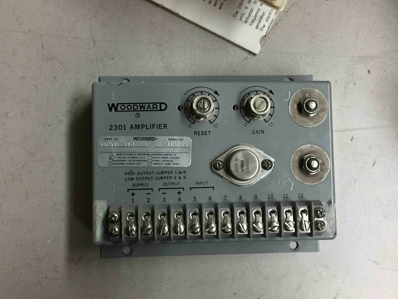 Woodward 2301, 2990000365990 Amplifier, Governor Control Panel, Speed Sensor